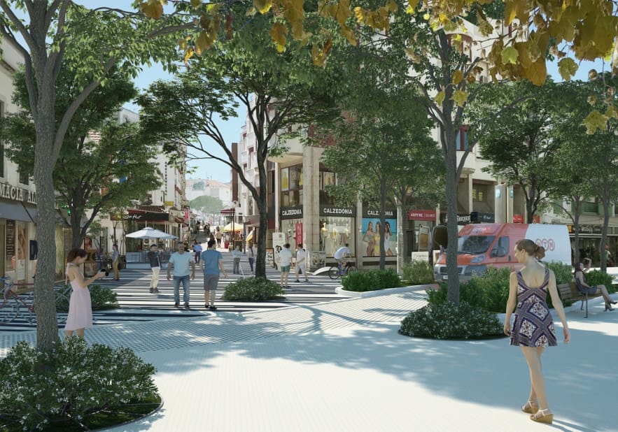 Além da colocação de novos elementos de iluminação e de mobiliário urbano e a plantação de árvores, criando zonas de «ensombramento» ao longo da rua, o projeto inclui a criação de um pórtico em memória da Coroa, que ali existiu outrora, aludindo à vivência histórica da Costa da Caparica.