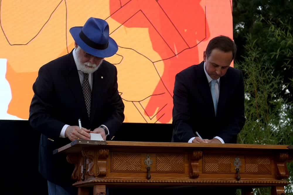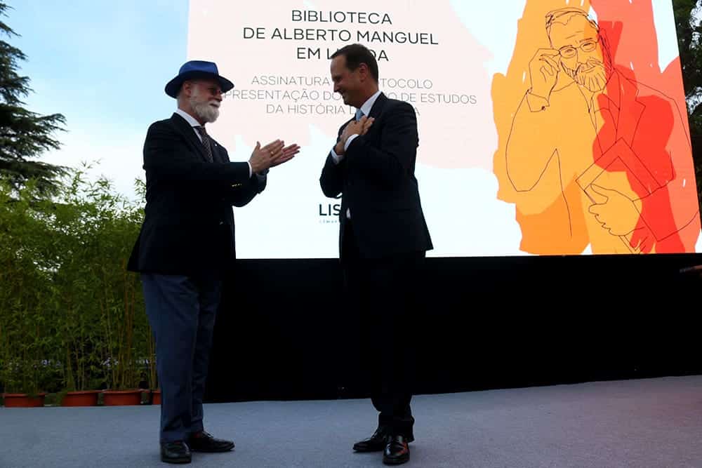 O protocolo de doação da biblioteca do escritor e bibliófilo argentino-canadiano Alberto Manguel foi assinado sábado, na Feira do Livro de Lisboa, pelo autor e pelo presidente da Câmara Municipal, Fernando Medina, que citou vários escritores portugueses e estrangeiros para afirmar que «a biblioteca passa a ter um local central na geografia cultural, literária e artistica», constituindo um “imã de atração e o motor central do trabalho que está a ser desenvolvido em Lisboa».