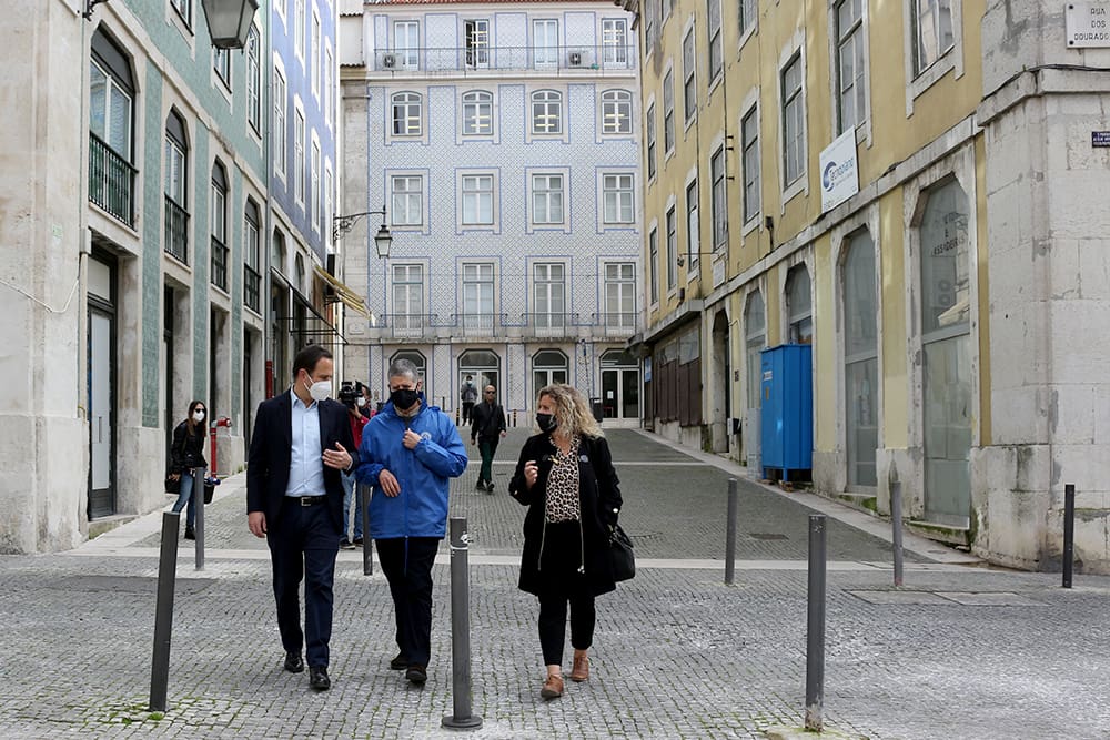 Hoje, Fernando Medina, presidente da Câmara Municipal de Lisboa, acompanhado pelo presidente da Junta de Freguesia de Santa Maria Maior, Miguel Coelho, esteve na baixa lisboeta, a «assistir» à distribuição das refeições contratadas com o Café Vitória para serem entregues a famílias carenciadas da freguesia de Santa Maria Maior.
