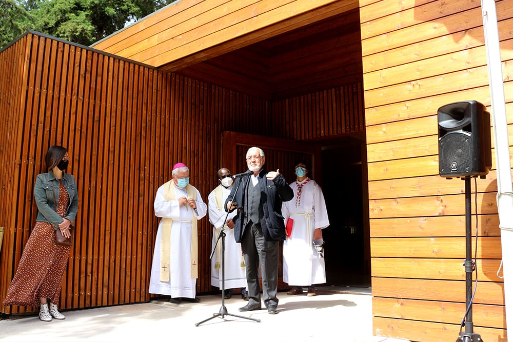 O padre Raimundo Sapalo Mangens pároco de Barcarena, presidiu à cerimónia de bênção da nova sede dos escuteiros desta freguesia de Oeiras.