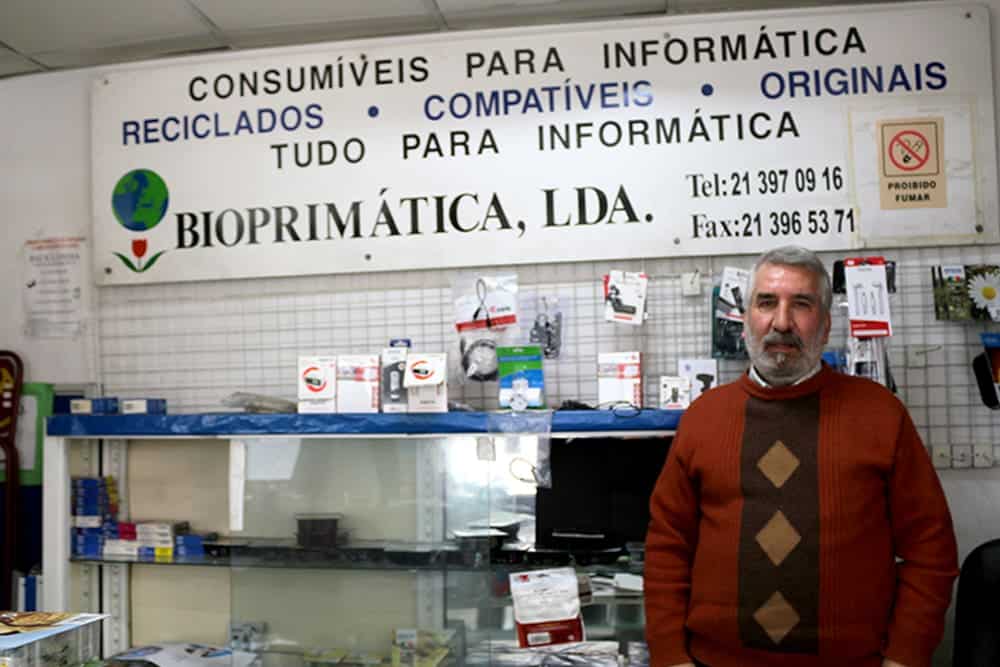 Luís Carvalho é o proprietário da Bioprimática, uma empresa de reciclagem de Consumíveis de Informática, situada na Avenida Infante Santo, 345 A, Lisboa, que, há 27 anos, começou a realizar a reciclagem de tinteiros e toner para as impressoras e fotocopiadoras. Atualmente, não efetua o «enchimento de tinteiros», porque os «compatíveis são bons e oferecem boas garantia de qualidade».