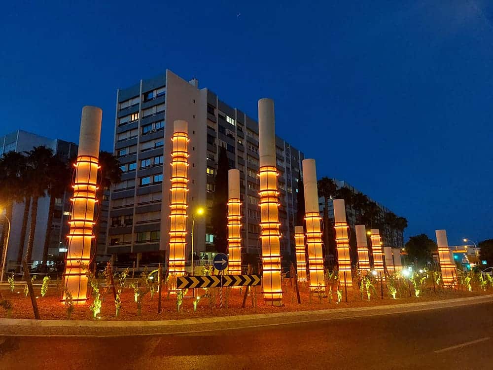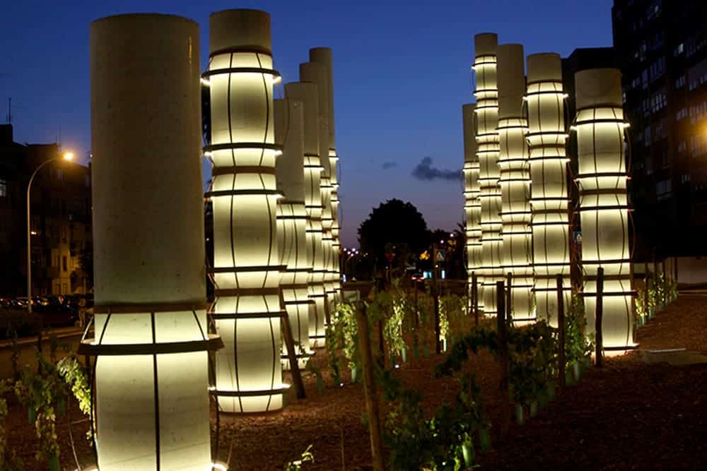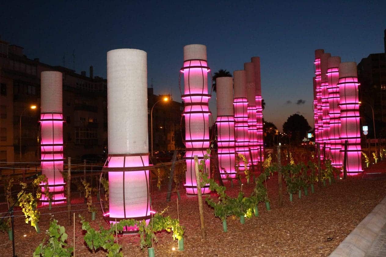 Desta forma, o Vinho de Carcavelos Villa Oeiras, que obteve os prémios de Grande Medalha de Ouro atribuída ao Villa Oeiras Superior e duas Medalhas de Prata ao Villa Oeiras 7 anos e Colheita Tinto 2009, pela ViniPortugal, recebeu agora mais esta distinção: a instalação de um Conjunto Escultórico, constituído por 17 colunas cilíndricas que sugerem a forma de pipas, empilhadas umas sobre as outras, evocando a produção do Vinho de Carcavelos, amplificado pela plantação, em linhas que seguem a orientação do eixo maior da rotunda, de videiras das castas utilizadas para a produção do famoso vinho.