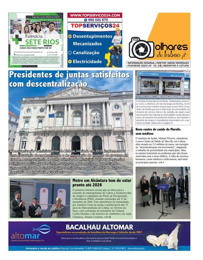 Na edição impressa de Olhares de Lisboa, já disponível para download, publicamos reportagens com 8 presidentes de Juntas de Freguesia de Lisboa. Desta forma, da Ajuda, Alcântara, Alvalade, Areeiro, Arroios, Belém, Campolide e S. Domingos de Benfica. Ou seja, queremos transmitir aos leitores o que tem sido realizado nas freguesias ao longo deste mandato. Na próxima edição publicaremos as restantes entrevistas sobre este tema da descentralização.