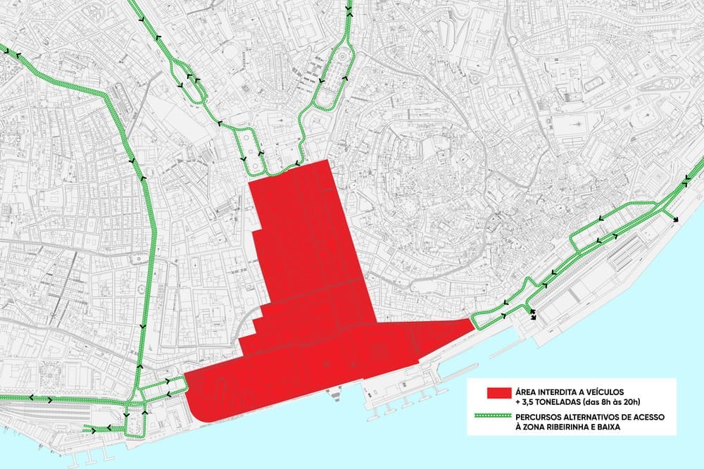 Desta forma, os pesados que vêm da Avenida da Liberdade, deve fazer inversão de marcha no Rossio e voltar ao Marquês de Pombal. Já quem vem da Avenida Almirante Reis, deve realizar inversão no Martim Moniz, na Praça da Figueira, no Rossio ou nos Restauradores.