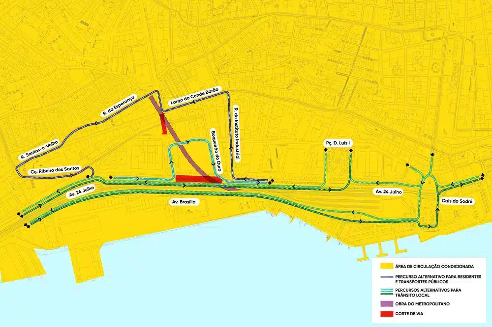 Já na Avenida 24 de julho, os condutores poderão utilizar, provisoriamente, a faixa BUS ali existente, sendo que este corredor passará a ter acesso à praça D. Luís I. A Avenida D. Carlos I passa a estar também condicionada ao trânsito. Contudo, segundo Filipe Anacoreta Correia, “este impedimento na 24 de julho deixará de existir, à partida, até julho”. Nesta altura, esta artéria deverá voltar a ter uma faixa em cada sentido.