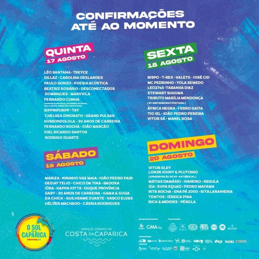 O Festival Sol da Caparica regressa à Costa da Caparica entre os dias 17 a 20 de agosto. Para além dos nomes já anunciados, a organização divulgou mais artistas que irão estar presentes no evento.