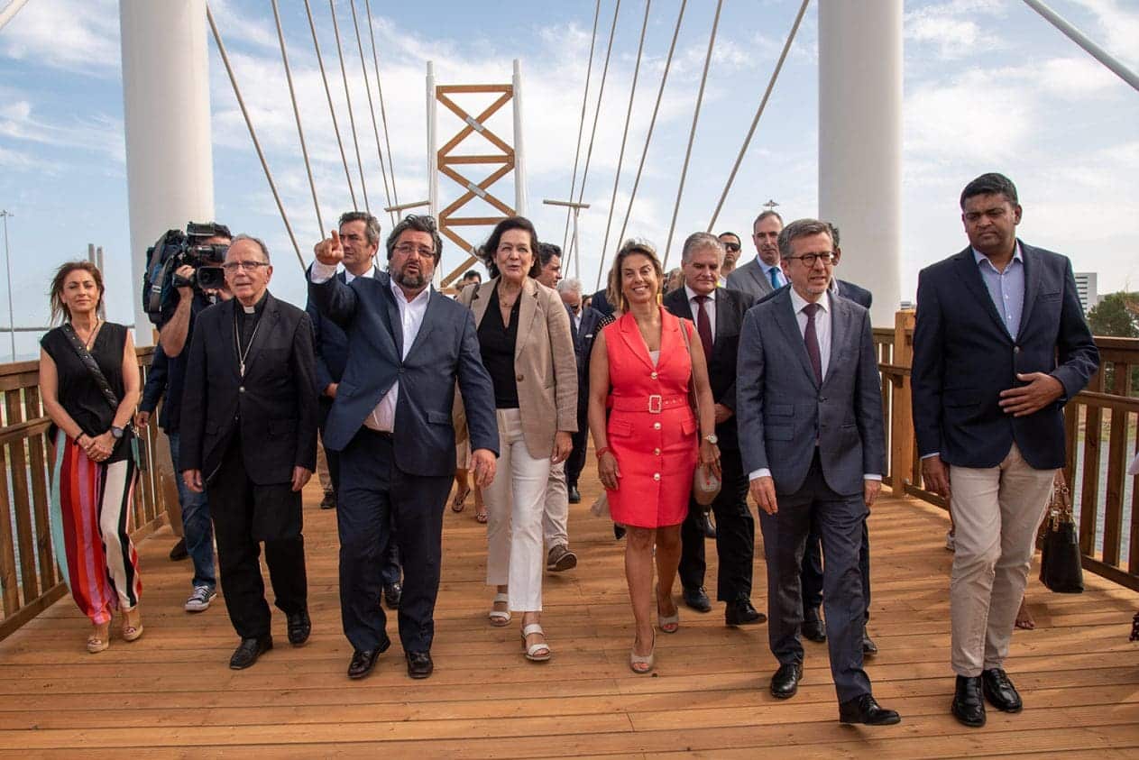 Os presidentes das câmaras de Lisboa, Carlos Moedas, e Loures, Ricardo Leão, inauguraram nesta quinta-feira a ponte ciclopedonal sobre o Rio Trancão, no Parque Tejo, onde vão decorrer os eventos mais importantes da Jornada Mundial da Juventude (JMJ). A estrutura de 560 metros, em que a madeira é o material dominante, foi oficialmente inaugurada.