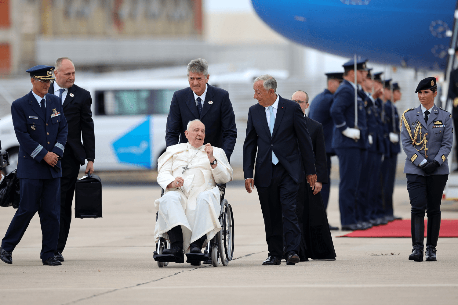 O Papa Francisco aterrou na manhã desta quarta-feira, dia 2 de agosto, na Base Aérea de Figo Maduro. De seguida, dirigiu-se para o Palácio de Belém, onde foi recebido pelo Presidente da República, Marcelo Rebelo de Sousa. De seguida, esteve reunido com a sociedade civil e o corpo diplomático no Centro Cultural de Belém. Aqui, o Santo Padre enfatizou o papel crucial que a Europa desempenha como construtora de pontes e pacificadora num contexto de guerra.