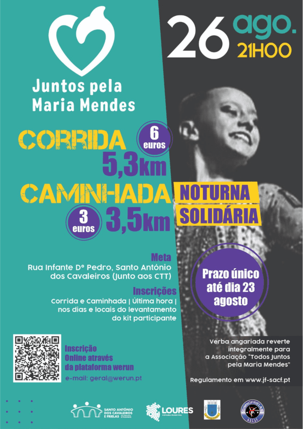 Segundo Sofia Atalaia, responsável pelo pelouro da Cultura da União das Freguesias de Santo António dos Cavaleiros e Frielas, a programação vai incluir uma corrida/caminhada solidária de apoio à atleta Maria Mendes, do GimnoFrielas. As entradas já estão à venda e a receita reverterá na íntegra para a jovem.