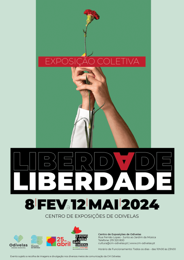 No próximo dia 8 de fevereiro, quinta-feira, o Centro de Exposições de Odivelas recebe a exposição ‘Liberdade’, até 12 de maio. O objetivo desta iniciativa será comemorar os 50 anos do 25 de Abril. Esta mostra é inaugurada às 21h00 e reúne trabalhos de pintura, escultura e fotografia de 80 artistas. Por fim, o Centro de Exposições de Odivelas fica na Rua Fernão Lopes, junto ao Jardim da Música. Poderá ver a exposição ‘Liberdade’ até 12 de maio. Ao mesmo tempo, a mostra pode ser visitada todos os dias, das 10h às 23h.