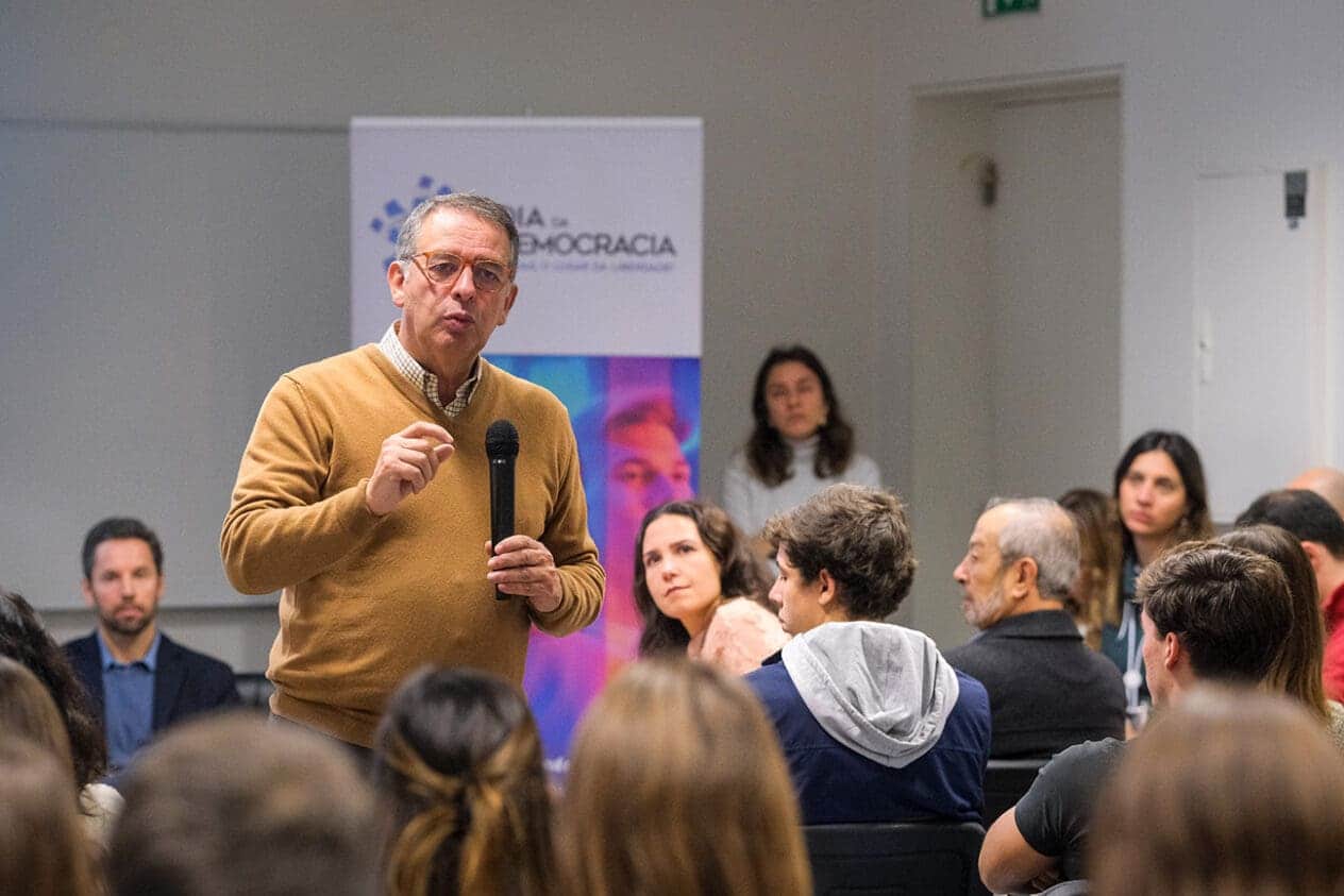 A seguir, o ‘Dia da Democracia’ passou pela Escola Secundária Amélia Rey Colaço, em Linda-a-Velha. O convidado foi Eduardo Marçal Grilo, que falou para mais de uma centena de alunos. A terceira escola foi a Secundária Sebastião e Silva, em Oeiras. Aqui, mais de 900 alunos estiveram a assistir, presencial e virtualmente, à conversa com José Miguel Júdice. Na Secundária Luis Freitas Branco, em Paço de Arcos, esteve o antigo Primeiro-Ministro, Pedro Passos Coelho, que partilhou o seu conhecimento com mais de 300 alunos.