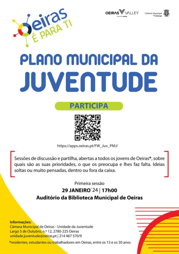 A primeira sessão pública para a discussão do Plano Municipal da Juventude arranca já no próximo dia 29 de janeiro, segunda-feira, às 17h00. O encontro será na Biblioteca Municipal de Oeiras. Esta discussão é destinada a todos os jovens residentes ou trabalhadores no concelho que tenham idades entre os 13 e os 30 anos.