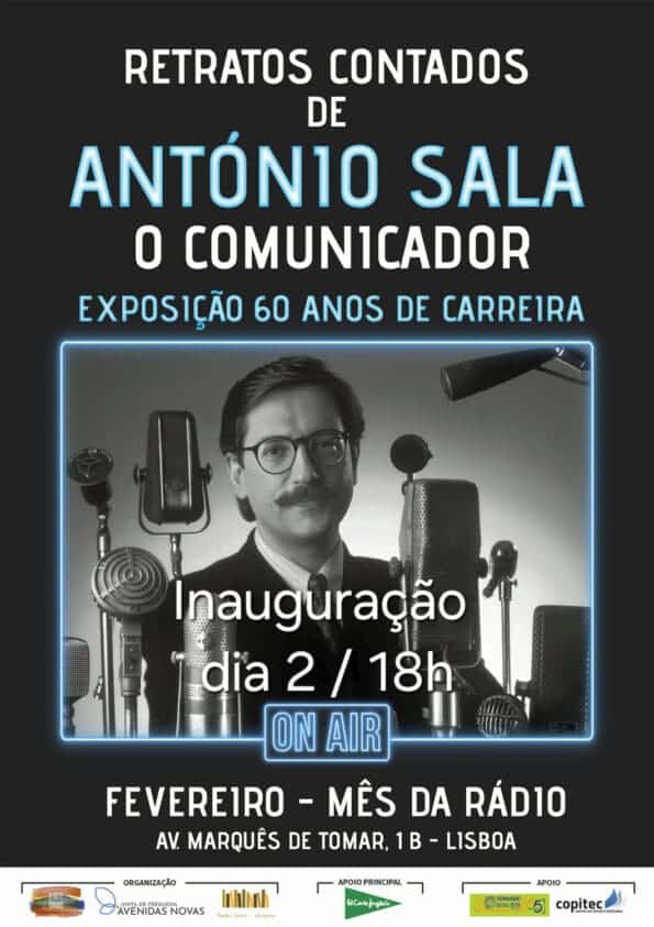 A iniciativa ‘Retratos Contados’ irá, a partir da próxima sexta-feira, 2 de fevereiro, homenagear o radialista e comunicador António Sala. A exposição é inaugurada neste dia, a partir das 18h00, na livraria ‘Tantos Livros, Livreiros’, na Avenida Marquês de Tomar, 1-B, na freguesia das Avenidas Novas. Poderá ver esta mostra durante o mês de fevereiro de segunda a sábado, entre as 10h00 e as 19h00, e a sua entrada é gratuita.