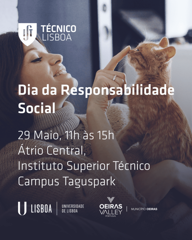 Na próxima quarta-feira, dia 29 de maio, entre as 11h00 e as 15h00, o campus de Oeiras do Instituto Superior Técnico receberá a 5ª edição do “Dia da Responsabilidade Social”, contando com o apoio da Câmara Municipal de Oeiras (CMO). Este é um evento que se realiza todos os anos e é conhecido pelo seu compromisso com questões sociais atuais. Este ano, o tema é ‘O Bem Estar Animal’.