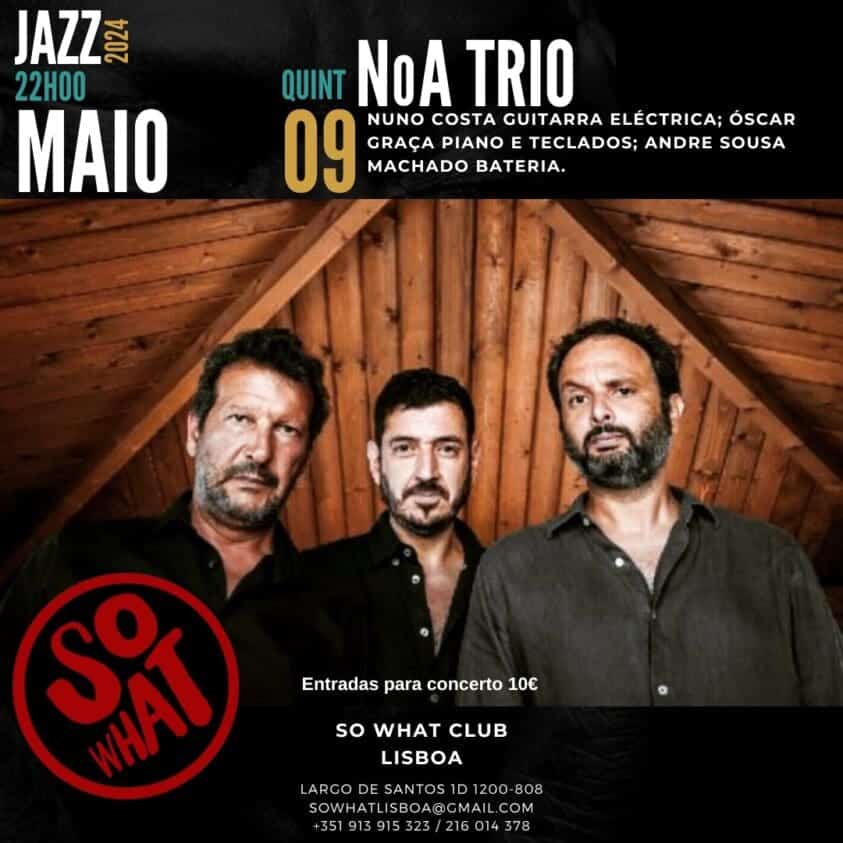 A banda portuguesa NoA vai atuar esta quinta-feira, 9 de maio, no So What Clube, no Largo de Santos. Antes do espetáculo, a partir das 18h, os espetadores são convidados a desfrutar de aperitivos e jantares preparados pela equipa de bar e pela chefe de cozinha do espaço. Os NoA são um conjunto composto por Nuno Costa nas guitarras, Óscar Graça no piano e teclados e André Sousa Machado na bateria e percussão.