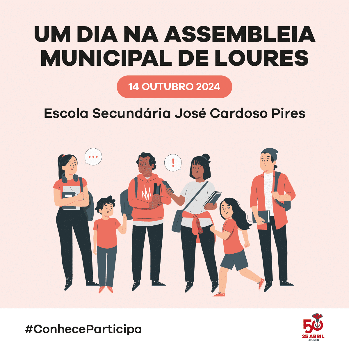 Jovens da Escola Secundária José Cardoso Pires, de Santo António dos Cavaleiros, vão, na próxima segunda-feira, 14 de outubro, até ao Palácio dos Marqueses da Praia e de Monforte, a fim de conhecer como funciona a Assembleia Municipal de Loures (AML), na iniciativa ‘Um Dia na Assembleia Municipal de Loures’. Esta ação terá a presença da presidente da Assembleia Municipal de Loures, Susana Amador, e do presidente da União de Freguesias de Santo António dos Cavaleiros e Frielas, Jorge Silva.