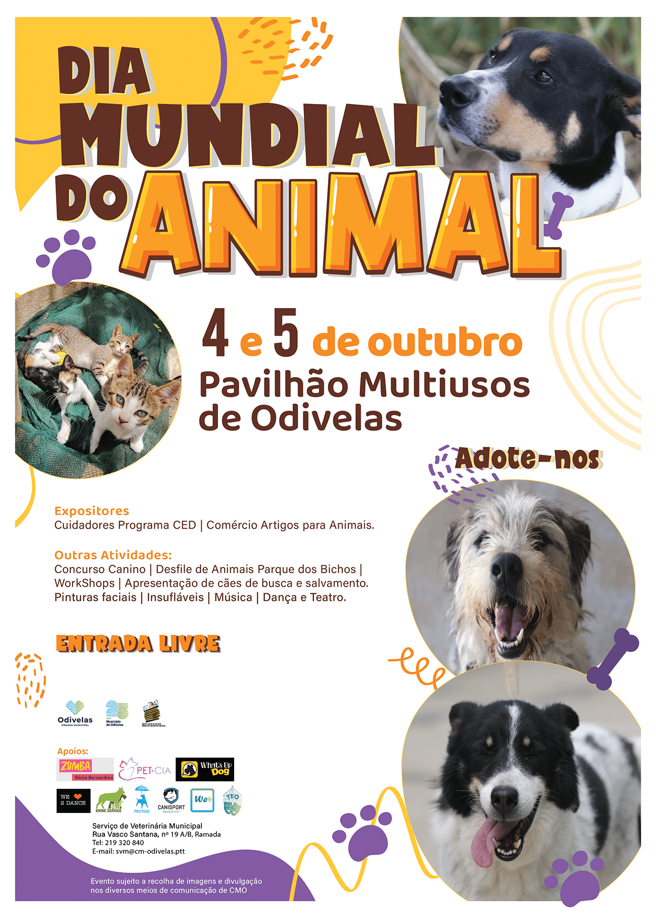 Para assinalar o Dia Mundial do Animal, que se assinala na próxima sexta-feira, 4 de outubro, a Câmara Municipal de Odivelas (CMO) está a promover um conjunto de atividades dedicadas aos tutores de animais de estimação. O evento acontece no Pavilhão Multiusos de Odivelas e contará com inúmeras atividades. Entre elas, emonstrações cinotécnicas, workshops diversos e um desfile dos animais do Parque dos Bichos, entre outras.