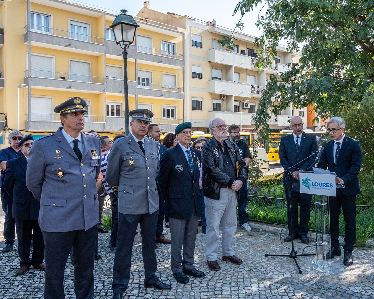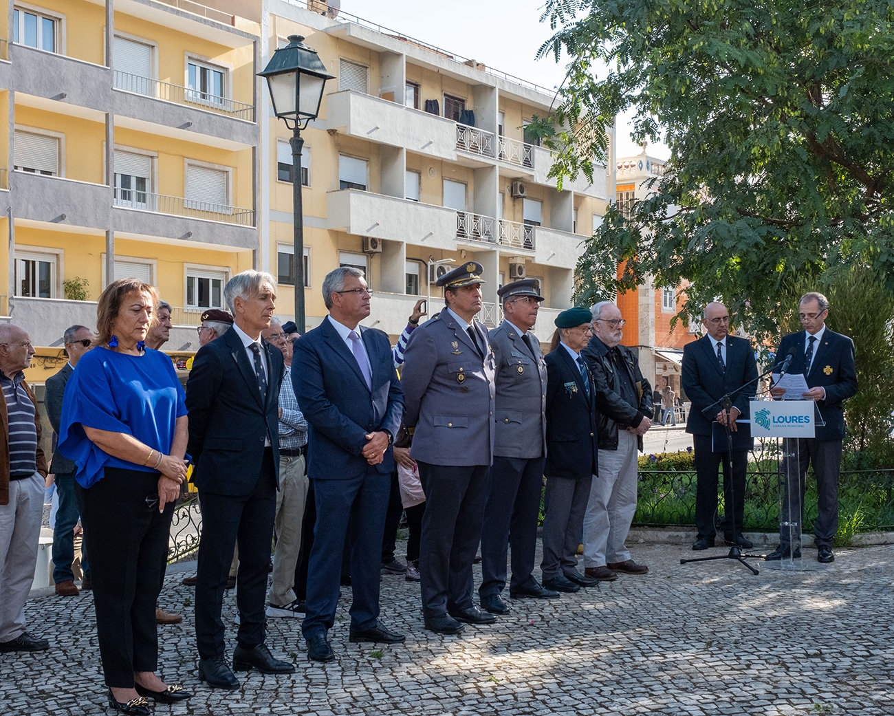 “Estes cidadãos deram parte da sua juventude, bem como o seu esforço e contributo pessoal em vários teatros de operações, para que a missão que lhes foi concedida fosse militarmente cumprida. Muitos desses militares ficaram feridos ou incapacitados a servir Portugal, e, em alguns casos, deram o sacrifício supremo, a própria vida. Por tudo isso, e pelo muito que se subentende, entendemos que tem pleno cabimento recordarmos e homenagearmos aqueles que um dia partiram para o desconhecido. Hoje, neste espaço de memória, interiorizamos o significado e o simbolismo deste memorial, no qual se escrevem os nomes de combatentes portugueses em justo e público testemunho”. Perez de Almeida terminou a sua intervenção a referir que este monumento será um importante “acervo patrimonial histórico que enaltece e enriquece a história de Loures”.