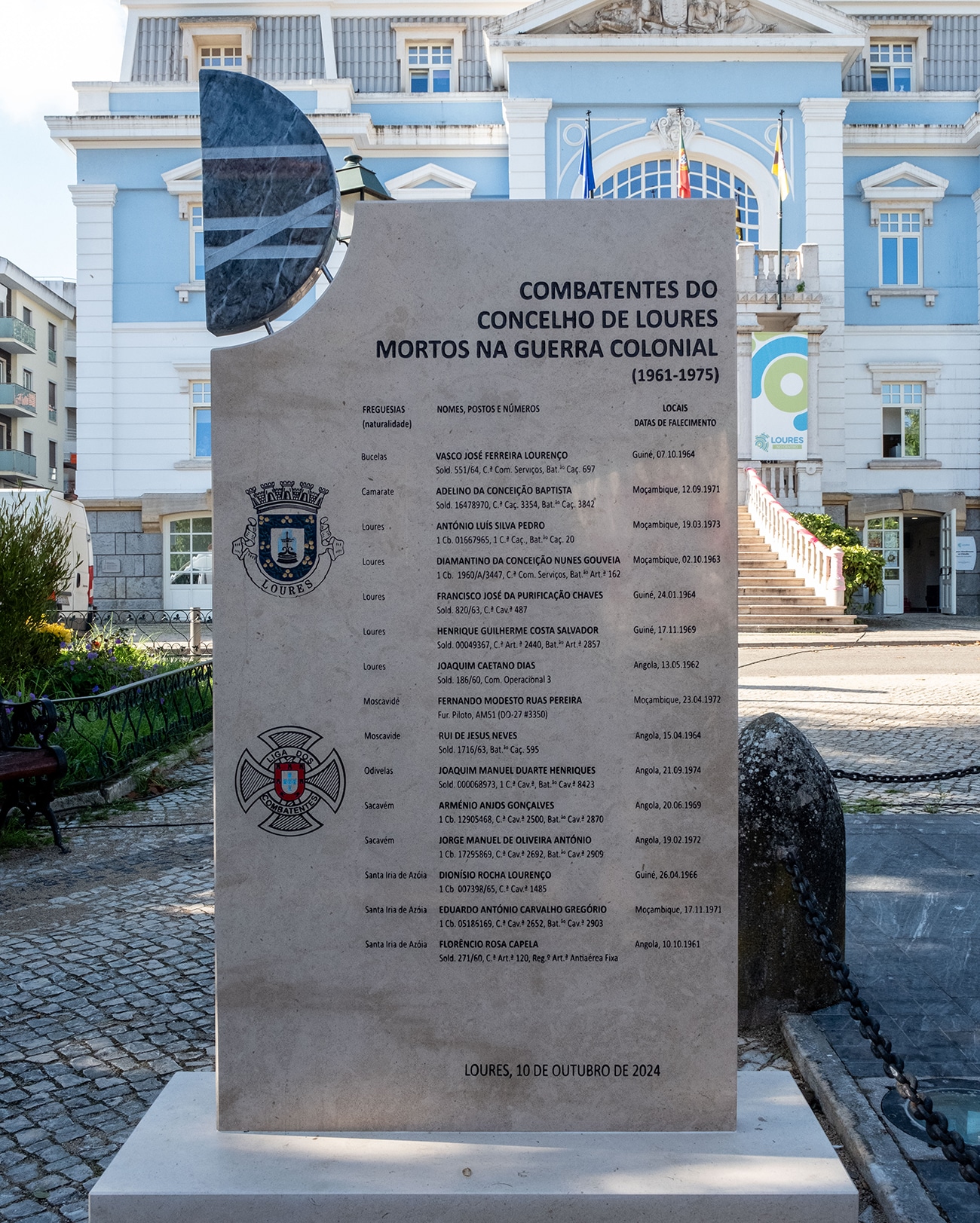A Câmara Municipal de Loures (CML) inaugurou, esta quinta-feira, 10 de outubro, um memorial aos mortos das campanhas ultramarinas, junto ao Monumento aos Combatentes, na Praça da Liberdade, em Loures. A inauguração fez-se no dia em que passam 63 anos da morte do primeiro soldado natural do concelho de Loures na Guerra do Ultramar.