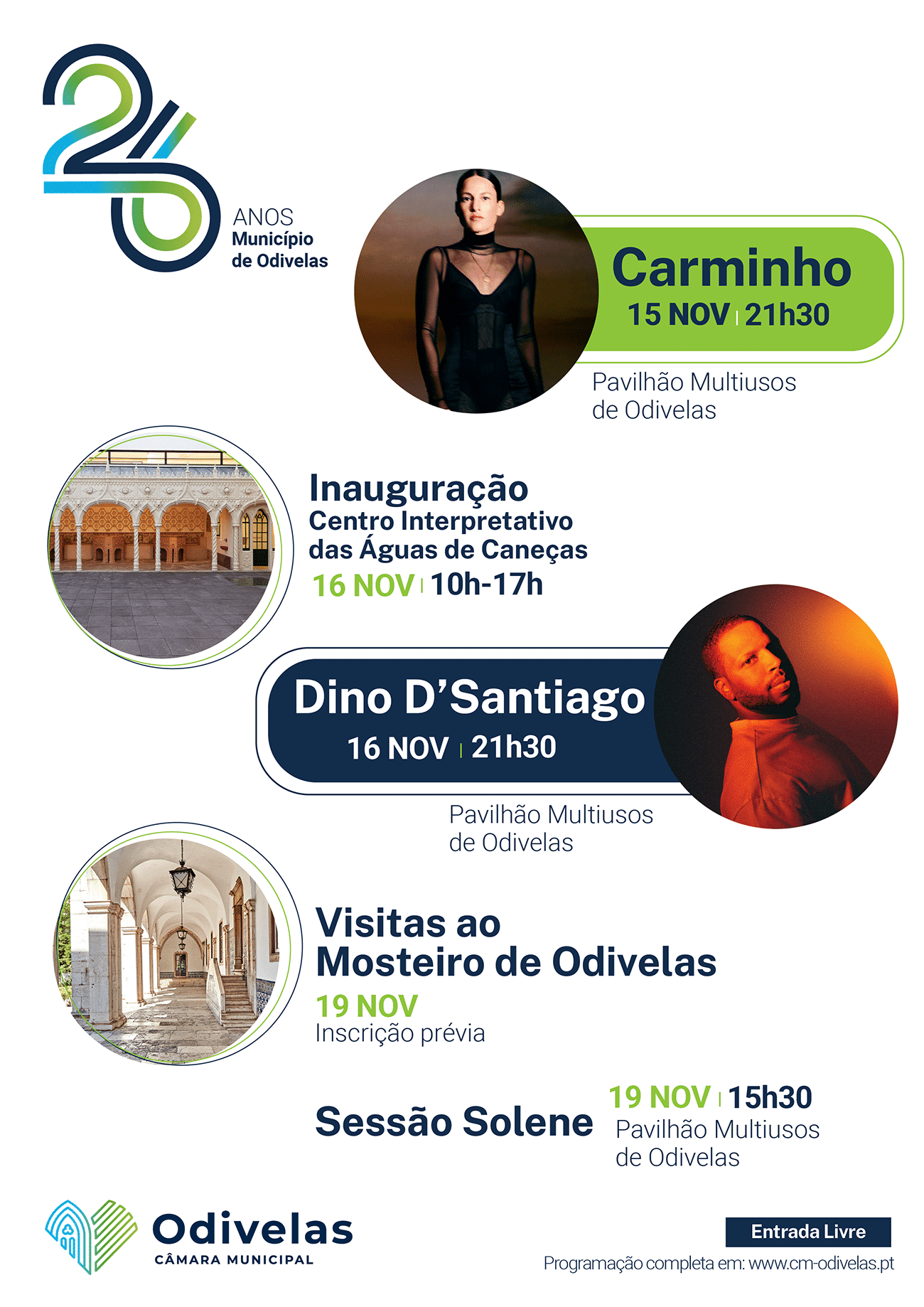 Para comemorar a efeméride, a Câmara Municipal promove um conjunto de iniciativas de entrada livre, destacando-se os concertos de Carminho e Dino D’Santiago no Pavilhão Multiusos de Odivelas.