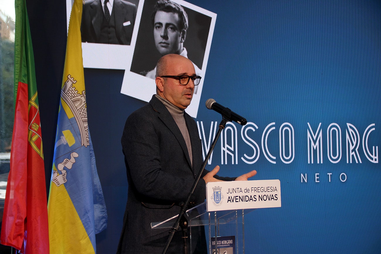 Daniel Gonçalves, presidente da JFAN, começou o seu discurso a agradecer a presença de todos os convidados, salientando que “é fantástico olhar para estas pessoas todas, que nos transmitem uma energia especial, uma espécie de manifestação coletiva, de afeto e gratidão, que emana de toda uma cidade, a nossa cidade, que não esquece a sua história, nem os protagonistas dessa mesma história”. A história de Vasco Morgado cruza-se com a história das Avenidas Novas, uma vez que, para além da sua residência, foi nesta freguesia que o ator trabalhou no Cineteatro Monumental, juntamente com a sua mulher, a atriz Laura Alves. Para além de ator, foi ainda empresário teatral, tendo produzido mais de mil espetáculos e peças que marcaram a história do teatro em Portugal.