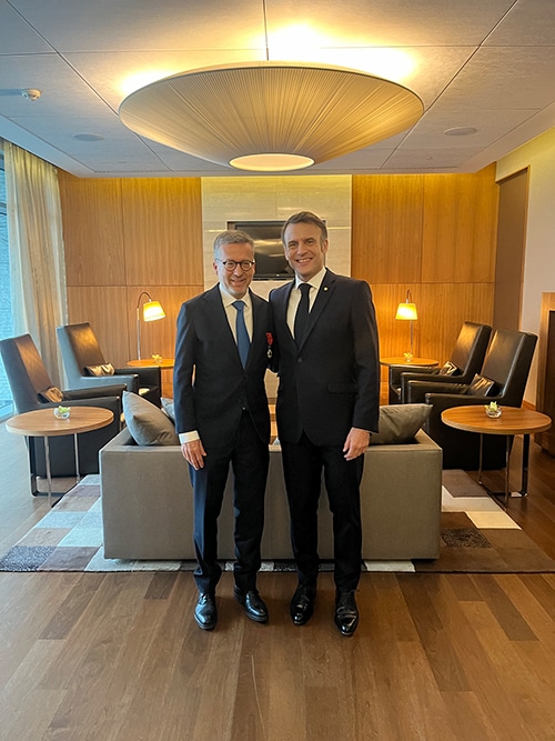 A condecoração foi feita pelo presidente Emmanuel Macron, durante a visita oficial a Portugal e que não quis deixar passar a oportunidade de assinalar o contributo de Moedas para as relações entre Portugal e França e a amizade entre os povos. “Em nome da República Francesa, faço Carlos Moedas cavaleiro da Legião de Honra”, declara, antes de abraçar o “amigo” Moedas, o primeiro autarca a receber esta honra, juntando-se a Mário Soares, Ramalho Eanes, Jorge Sampaio e Marcelo Rebelo de Sousa na lista dos agraciados com a mais alta distinção de França.