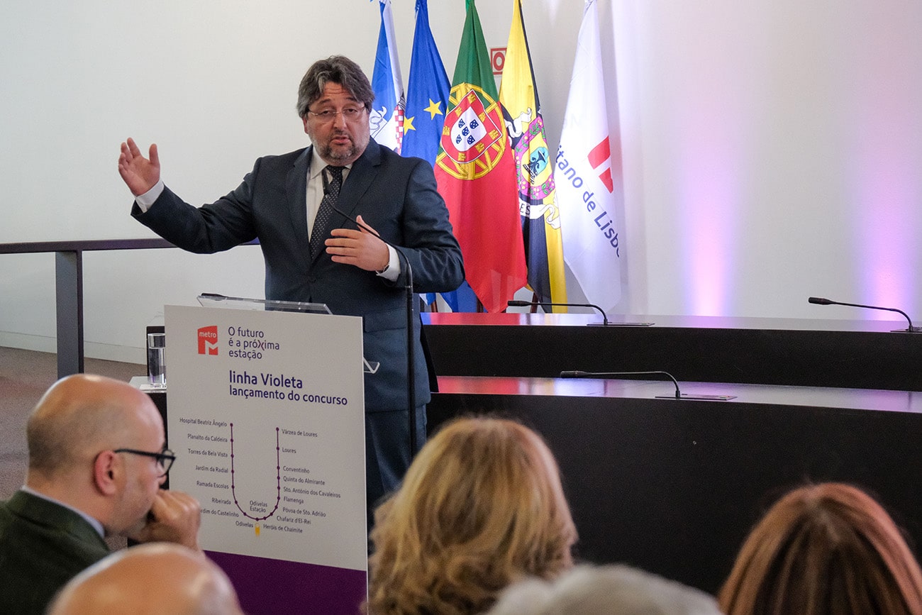 O ministro das Infraestruturas, Miguel Pinto Luz, recordou que o projeto da Linha Violeta do Metro de Lisboa tem tido uma vida difícil. O primeiro concurso foi cancelado em novembro de 2024, depois de a Mota-Engil e a Zagope terem apresentado propostas acima do valor base, “numa média de cerca de 28%”, segundo foi referido na cerimónia.