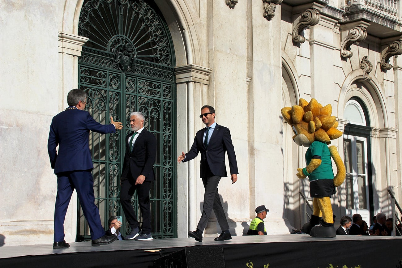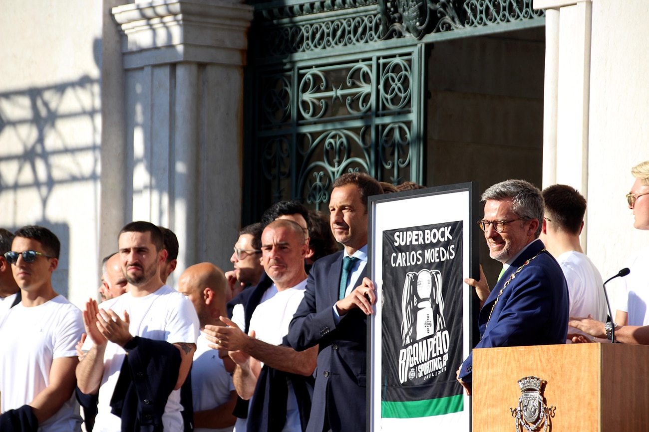 Debaixo de uma enorme onda de descontentamento sonoro — espoletado pelo encerramento dos espaços comerciais depois das 16h nas imediações do Estádio do Sporting no dia da conquista do campeonato –, Carlos Moedas partiu para o elogio da equipa, lembrando que Lisboa “é mais uma vez verde e branca”, “é mais uma vez Sporting Clube de Portugal”.