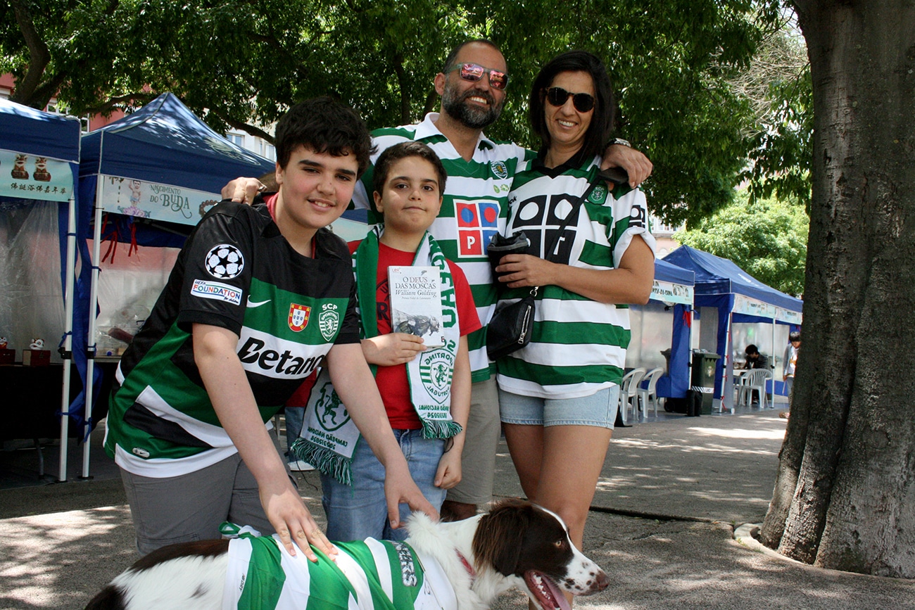 A família Félix está equipada a rigor com as camisolas do Sporting Clube de Portugal – o cão da família também está vestido com uma camisola do clube e é o mais irrequieto do grupo. Vivem nas imediações da Fonte Luminosa e não quiseram perder a oportunidade de indagar o ambiente da festa do nascimento de Buda. Assumem-se “muito bem impressionados” com a “boa onda” que “há no espaço”.