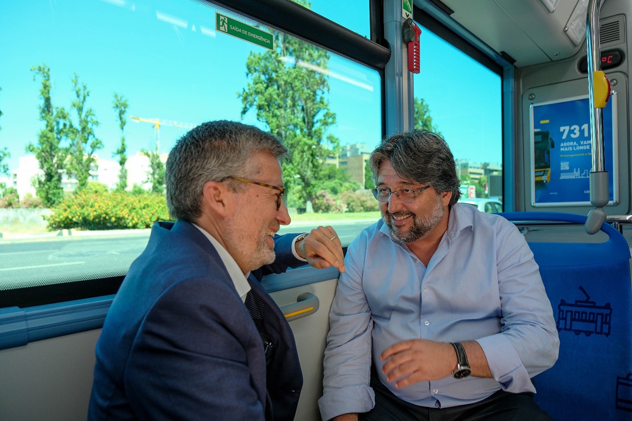 O presidente da Câmara Municipal de Lisboa, Carlos Moedas, e o presidente da Câmara Municipal de Loures, Ricardo Leão, participaram na viagem inaugural da carreira 731 que liga Lisboa ao território de Loures, no dia 27 de junho.