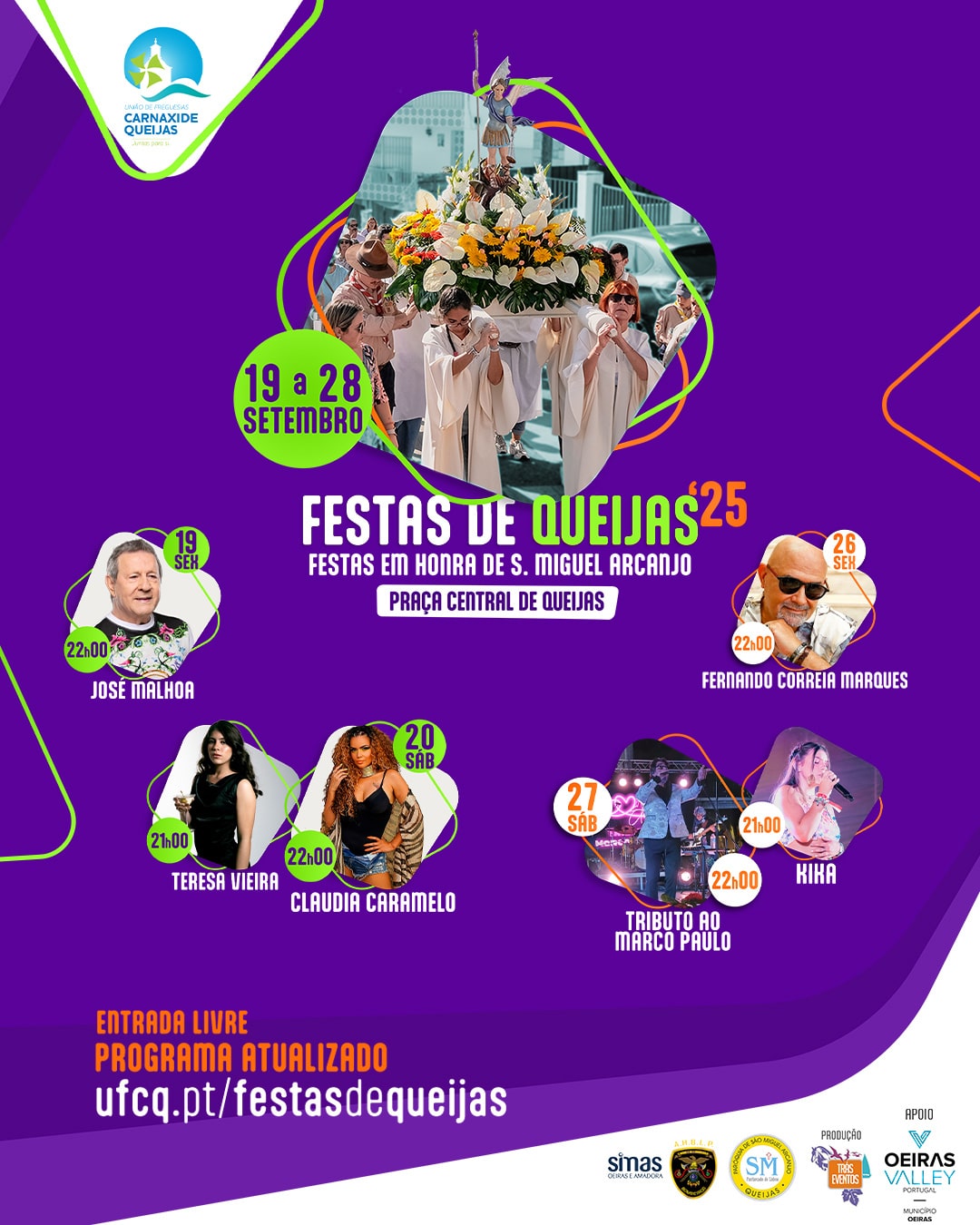 O recinto das festas, localizado na Praça Central de Queijas (junto ao mercado), vai acolher ainda inúmeras atuações e atividades: aeróbica, zumba, atuações de dança, bailes, treinos abertos de desporto e demonstrações, entre outras.