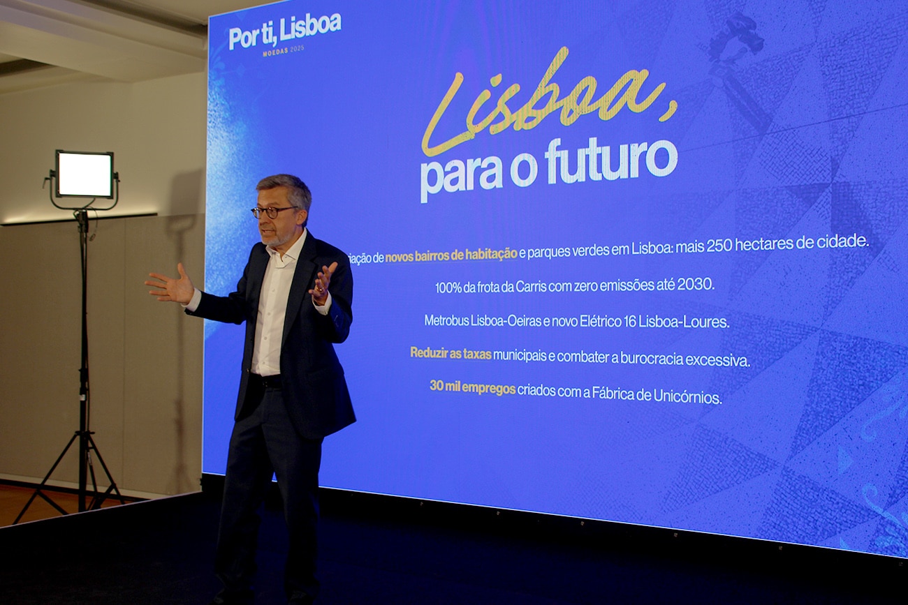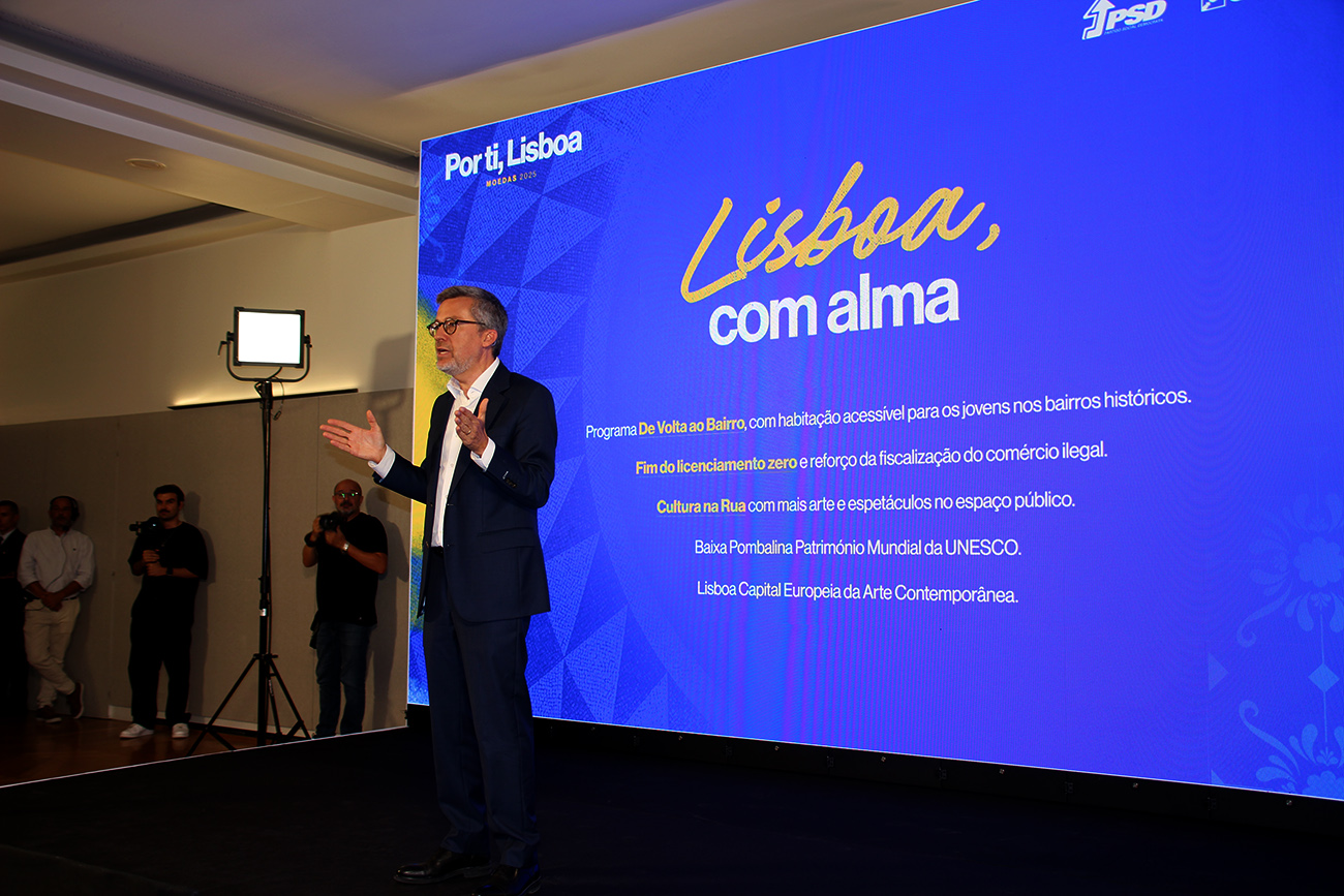 O presidente da Câmara de Lisboa, Carlos Moedas, apresentou nesta quinta-feira o programa eleitoral da coligação Por Ti, Lisboa (PSD-CDS-Iniciativa Liberal), com o qual pretende ser reeleito para um segundo mandato nas eleições autárquicas de 12 de outubro, apontando a habitação, a segurança e a mobilidade como prioridades entre as 15 medidas principais, numa sessão onde contou com uma forte comitiva de governantes, como António Leitão Amaro, Joaquim Miranda Sarmento e Miguel Pinto Luz, mas também outros nomes fortes da direita partidária que sustenta a coligação, como o candidato presidencial João Cotrim de Figueiredo, Teresa Morais e Leonor Beleza.