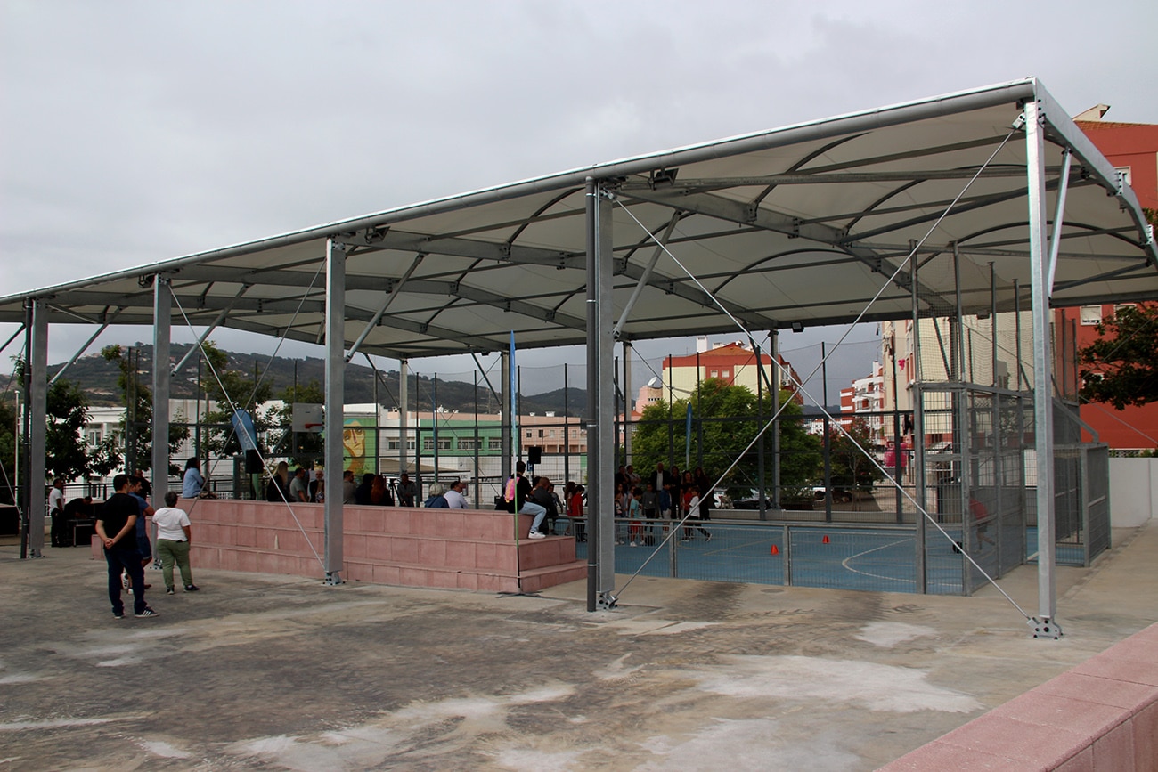 Esta intervenção traduziu-se numa área coberta de 414 m2 e contemplou a estrutura de sustentação da cobertura, a cobertura do polidesportivo e da bancada, sistema de drenagem e iluminação, num investimento municipal de 170 mil euros.