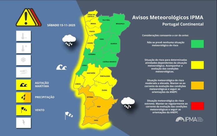 O SMPCL alerta que os Avisos Amarelos de Precipitação mantêm-se até às 21h de hoje, dia 14 de novembro, e de vento até às 21h de hoje. O Aviso Amarelo de Agitação Marítima mantém-se até domingo.