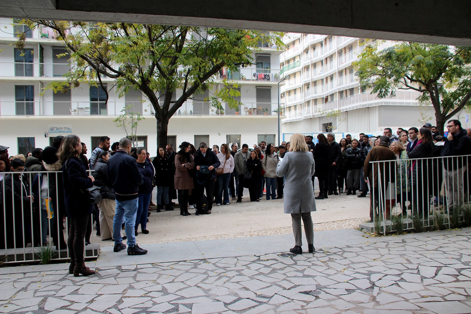 Carlos Moedas lembrou o trabalho “feito em articulação” com as instâncias estatais e europeias para pôr de pé as 152 novas casas, mas enalteceu sobretudo o trabalho diário das equipas técnicas que estão na rua a construir habitação, designadamente o vereador Vasco Moreira Rato, a empresa de reabilitação municipal, liderada pelo engenheiro Gonçalo Santos Costa, a Gebalis, a engenheira Marta Sotto Maior, por ser uma “mulher absolutamente extraordinária, que já viu passar (na CML) muitos presidentes, muitos ministros, mas que representa o melhor que este país tem, que são os funcionários que trabalham todos os dias para vocês”.