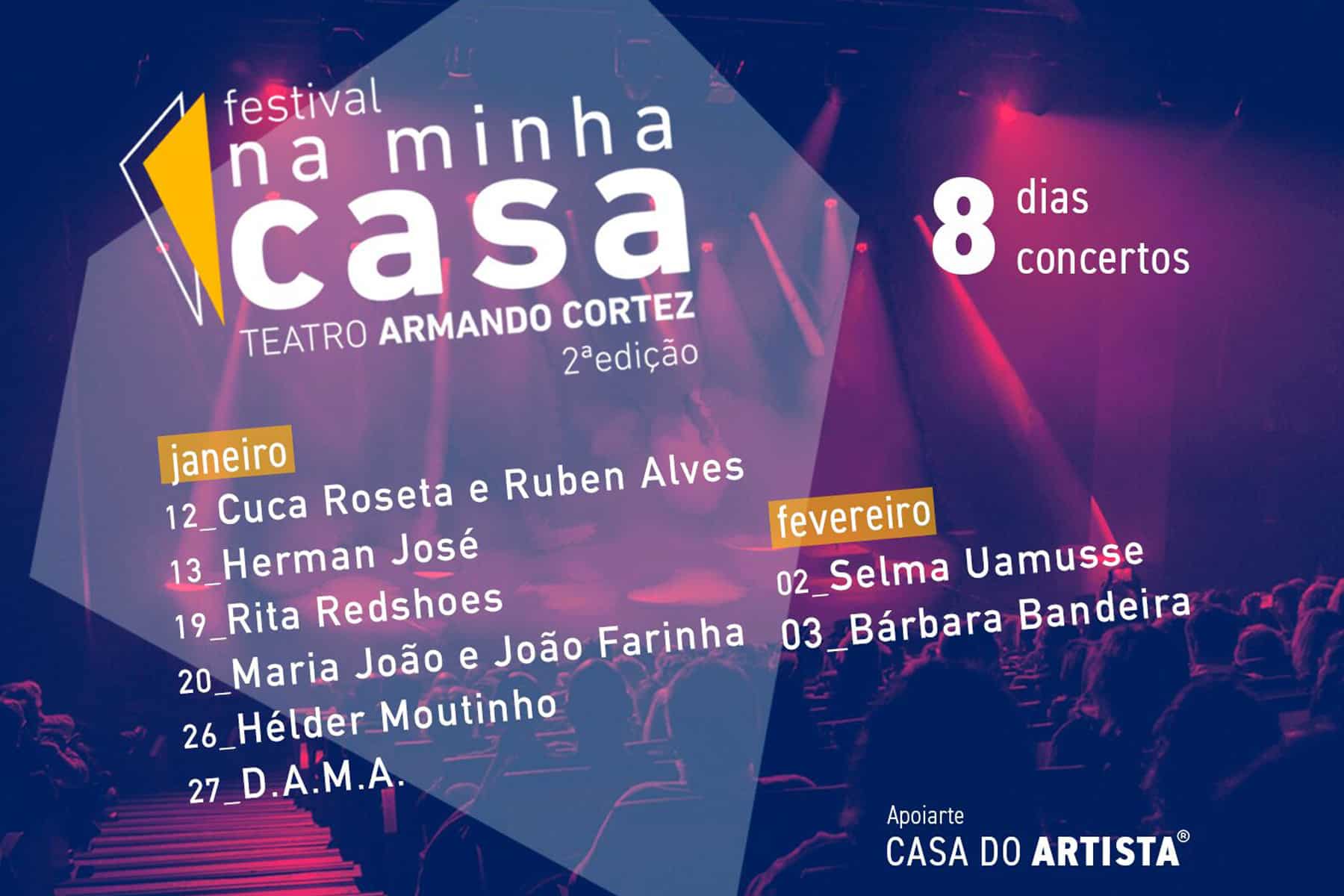A Casa do Artista promove entre 12 de janeiro e 3 de fevereiro a segunda edição do Festival Na Minha Casa, que terá lugar no Teatro Armando Cortez, em Lisboa, às 21h, todas as segundas e terças-feiras.