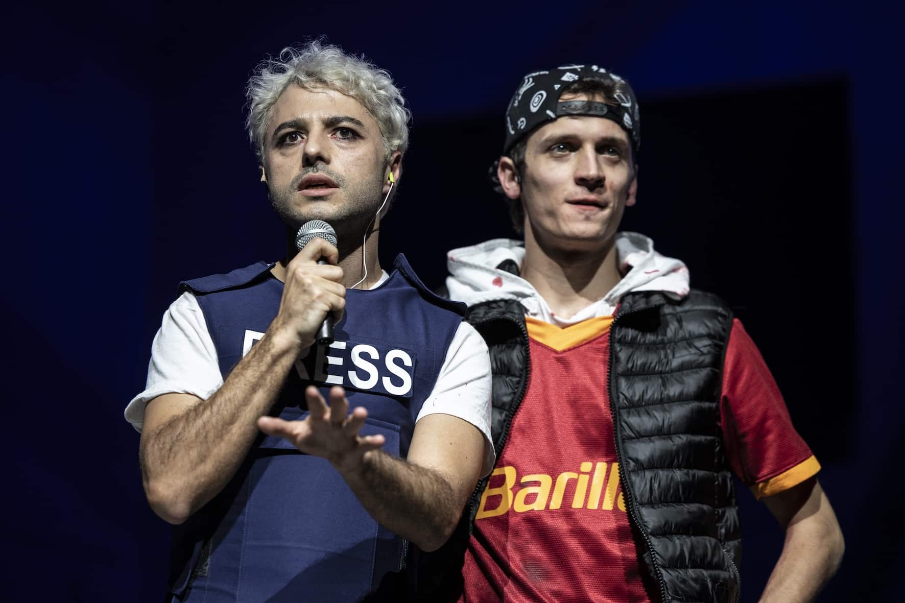 O espetáculo mistura o trágico e o cómico, recorrendo a transmissões em direto, comentadores e momentos de stand-up que ressaltam a participação ativa dos espetadores tanto no teatro como na vida.