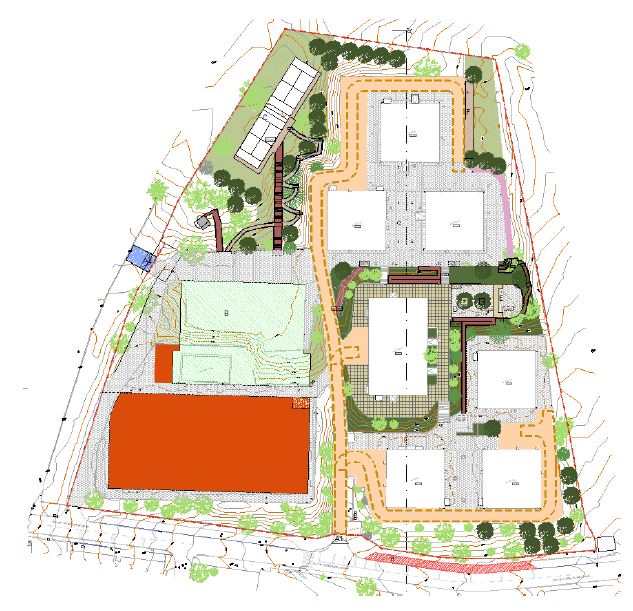 No que respeita aos espaços exteriores, o projeto contempla melhorias significativas ao nível da acessibilidade e da segurança, a redução da circulação automóvel no interior do recinto escolar, a criação de uma nova portaria pedonal, percursos acessíveis entre os vários blocos e uma zona de paragem rápida, para deixar ou recolher os alunos sem estacionar.