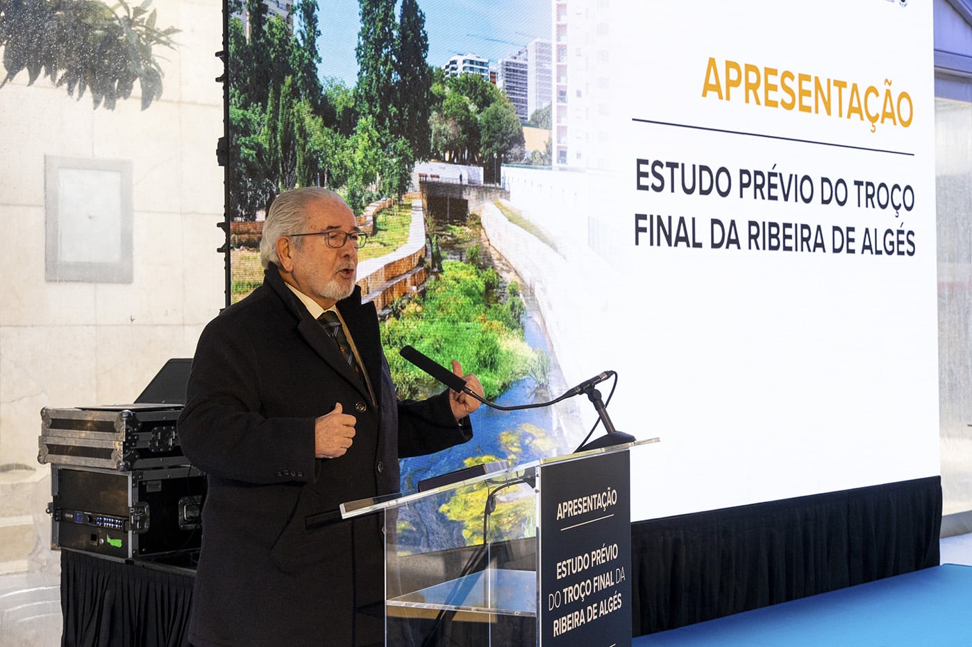 O Estudo Prévio do Troço Final Canalizado da Ribeira de Algés, elaborado para os SIMAS de Oeiras e Amadora em conjunto com a empresa Hidra, Hidráulica e Ambiente, foi entregue pela Câmara de Oeiras à ministra do Ambiente e prevê intervenções prioritárias para mitigação de cheias, incluindo a reabilitação do caneiro e um trecho final em vala aberta.