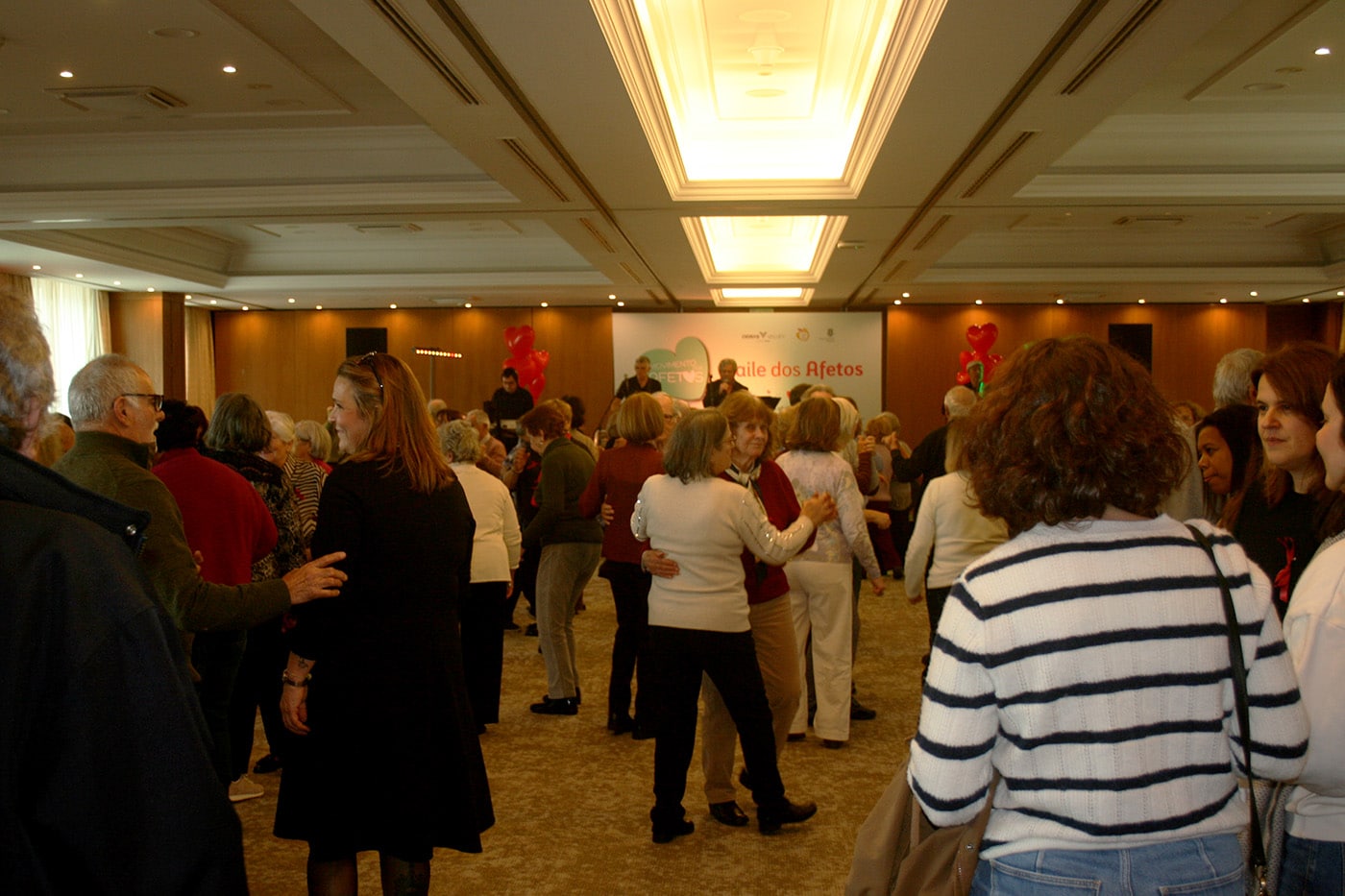 Alheios ao granizo, chuva e vento forte que teimam em martirizar ruas, estruturas, árvores e tudo o mais lá fora, cerca de 250 seniores do concelho de Oeiras rodopiam e dançam ao som da música popular que está a animar o “Baile dos Afetos”, uma iniciativa promovida pelo Município de Oeiras no âmbito do “Movimento dos Afetos” e destinada exclusivamente aos munícipes seniores com 65 ou mais anos, no dia 13 de fevereiro, no Hotel Real de Oeiras.