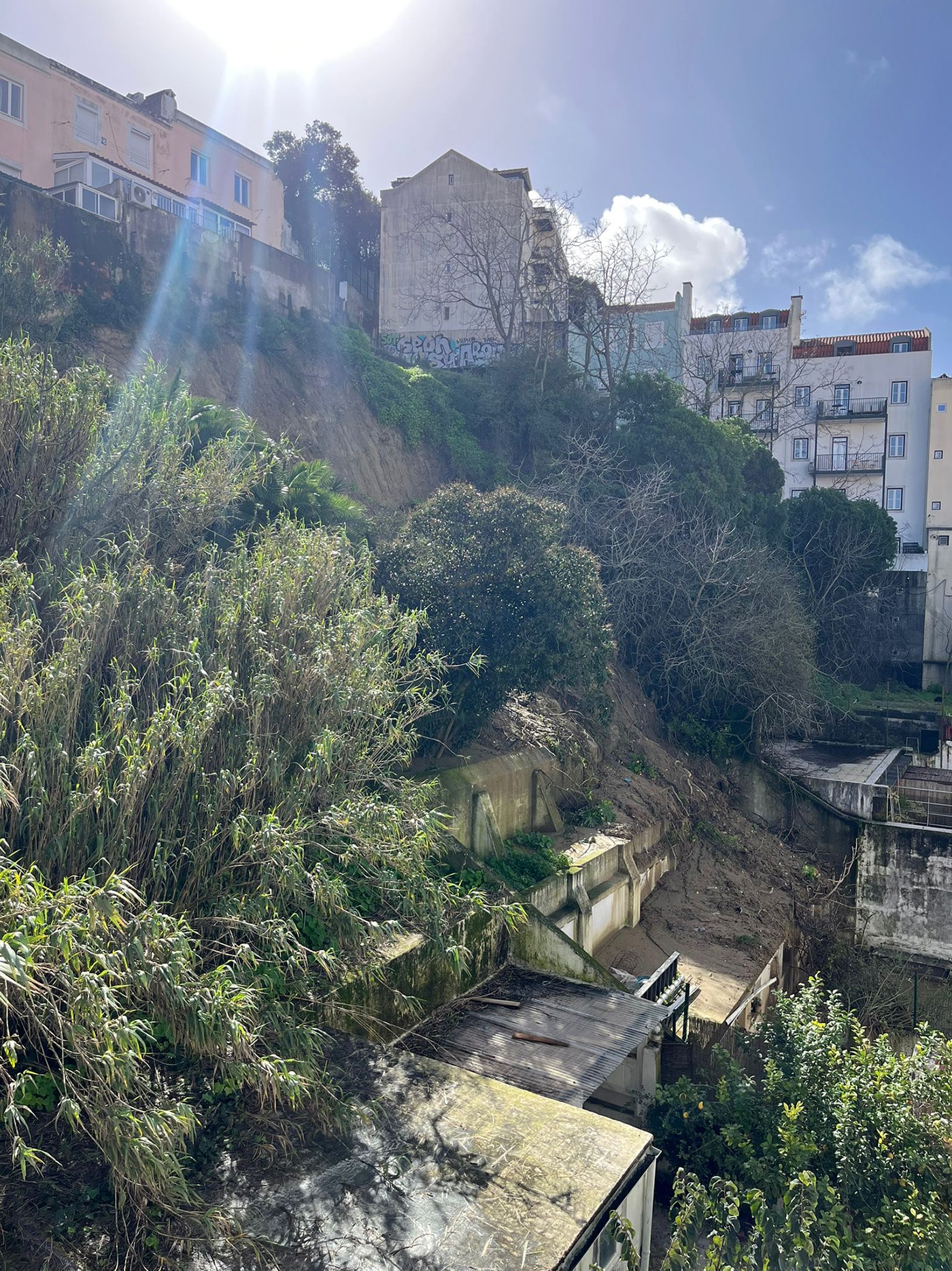 “Os terrenos em causa são maioritariamente privados e de acesso fisicamente difícil (a única via é por cima dos prédios da Rua Damasceno Monteiro). Independentemente deste facto, as condições climatéricas das últimas semanas não garantiram as condições técnicas e de segurança necessárias para a realização de qualquer obra”.