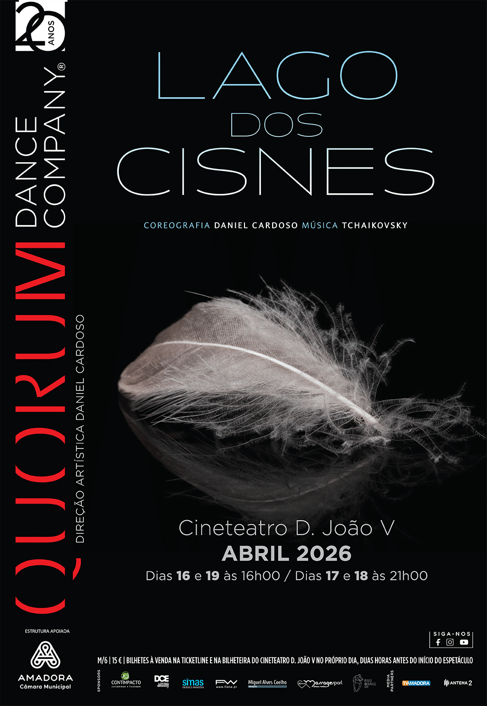 De 16 a 19 de abril, o Cineteatro D. João V da Amadora acolhe o espetáculo de dança “Lago dos Cisnes”, apresentado pela Quorum Dance Company.