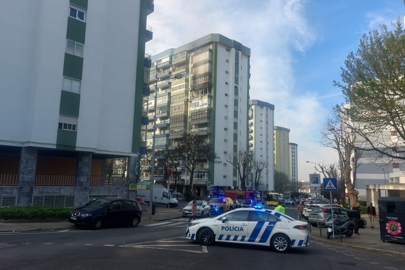 À chegada ao teatro de operações, os bombeiros depararam-se com “um incêndio de grande intensidade”, mas primeiramente evacuaram o prédio para “pôr os moradores em segurança”, tendo que arrombar a porta do apartamento do 8º andar onde deflagrou o incêndio. “Tentámos controlar o incêndio no 8º andar, uma vez que havia a propagação vertical (das chamas) ao 9º andar, mas conseguimos controlar a situação e, também, a propagação do incêndio aos andares superiores”.