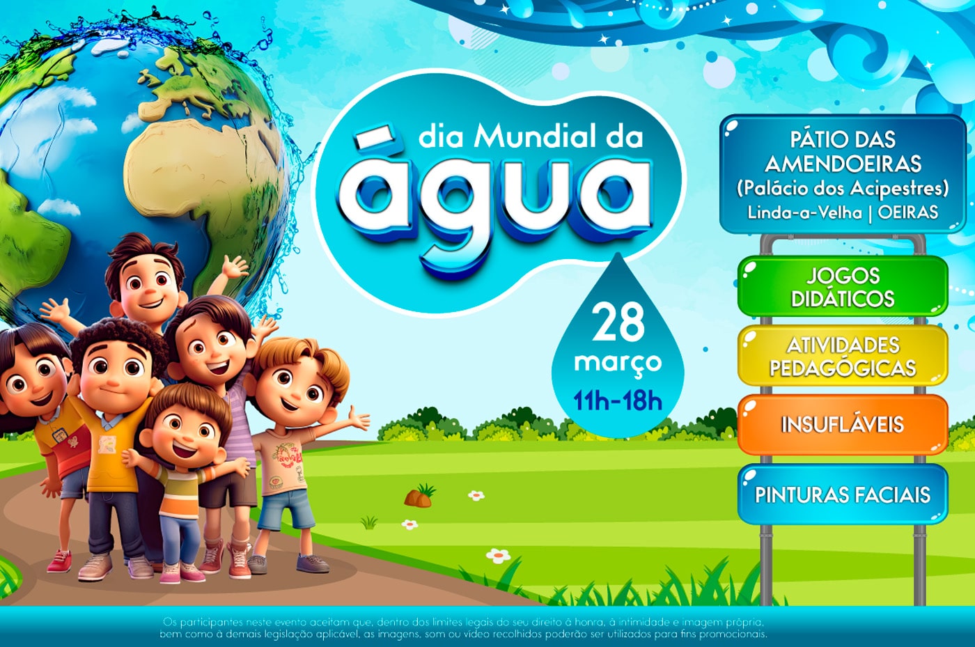 Os Serviços Intermunicipais de Água e Saneamento (SIMAS) de Oeiras e Amadora celebram o Dia Mundial da Água com um evento que ocorrerá no dia 28 de março, das 11h às 18h, no Palácio dos Aciprestes, em Linda-a-Velha, Oeiras. A entrada é livre e o evento apresenta um programa diversificado, destinado a toda a família.