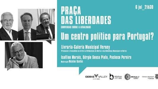 Na próxima iniciativa da Praça das Liberdades, se realiza hoje, dia 6 de julho, Isaltino Morais, Sérgio Sousa Pinto e Pacheco Pereira vão debater a ideia de Centro Político em Portugal. O encontro está marcado para as 21H30, na Livraria-Galeria Municipal Verney, em Oeiras, e conta com a moderação de Nicolau Santos.