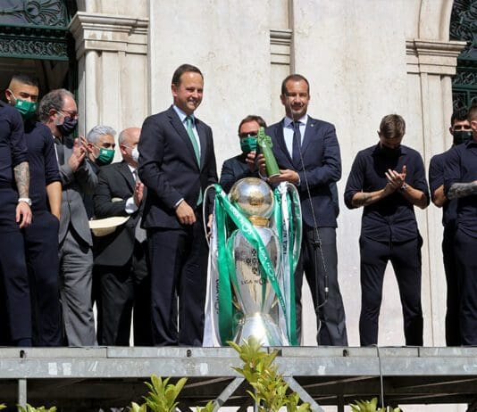 A equipa de futebol do Sporting, que se sagrou campeã nacional foi recebida na Câmara de Lisboa por Fernando Medina, sem a presença de adeptos na Praça do Município e ruas adjacentes.