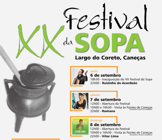 A 20ª edição do Festival da Sopa volta à vila de Caneças, nos dias 6 a 8 e de 13 a 15 de setembro. A entrada neste certame é gratuita e, para além das sopas, que vão estar à disposição para prova, haverá muita música, artesanato, entre outras sugestões.
