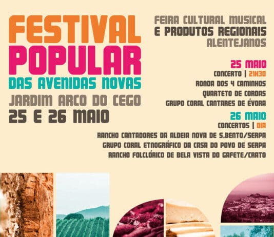 A Junta de Freguesia das Avenidas Novas (JFAN) está a organizar, nos dias 25 e 26 de maio, a primeira edição do 'Festival Popular das Avenidas Novas', que irá dedicar-se à cultura e às raízes alentejanas. O evento está marcado para o Jardim do Arco do Cego.