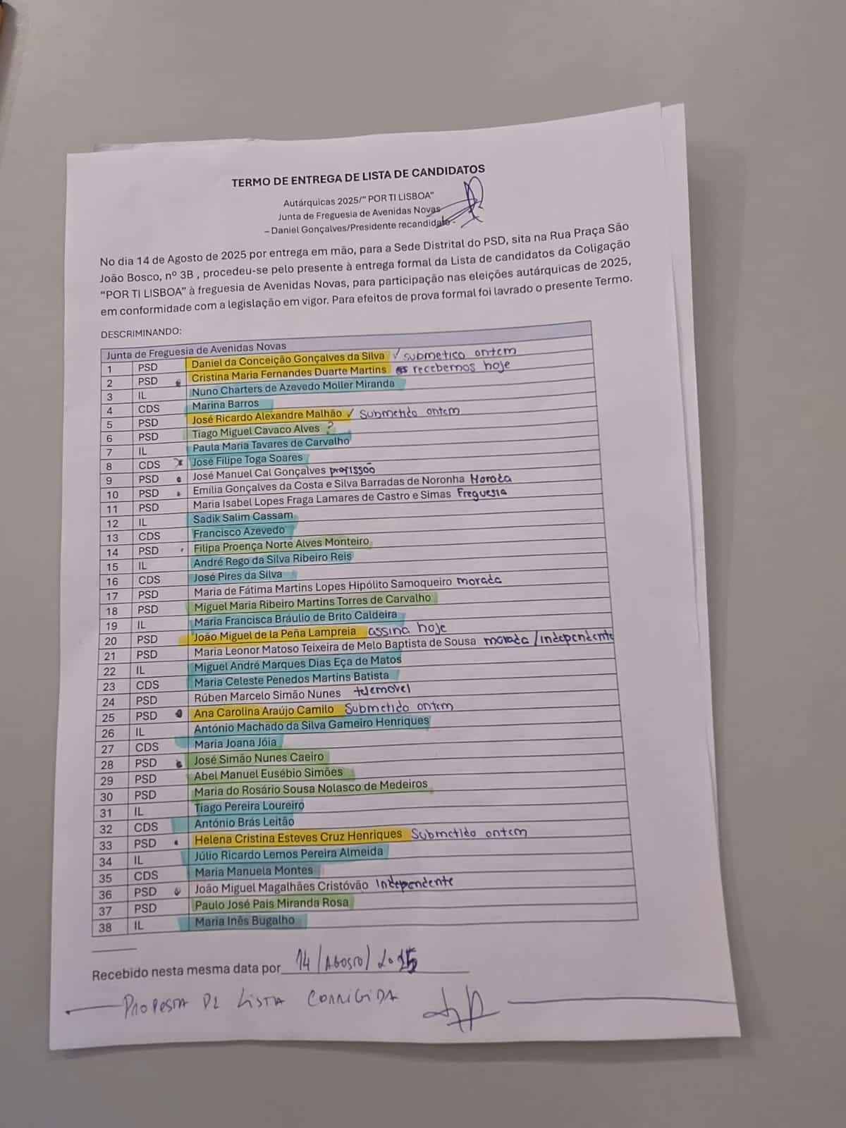 A Mesa da Assembleia de Freguesia vai ser preenchida por Rafael Marques (presidente), Carla Santos (1º secretário) e Beatriz Figueiredo (2º secretário).